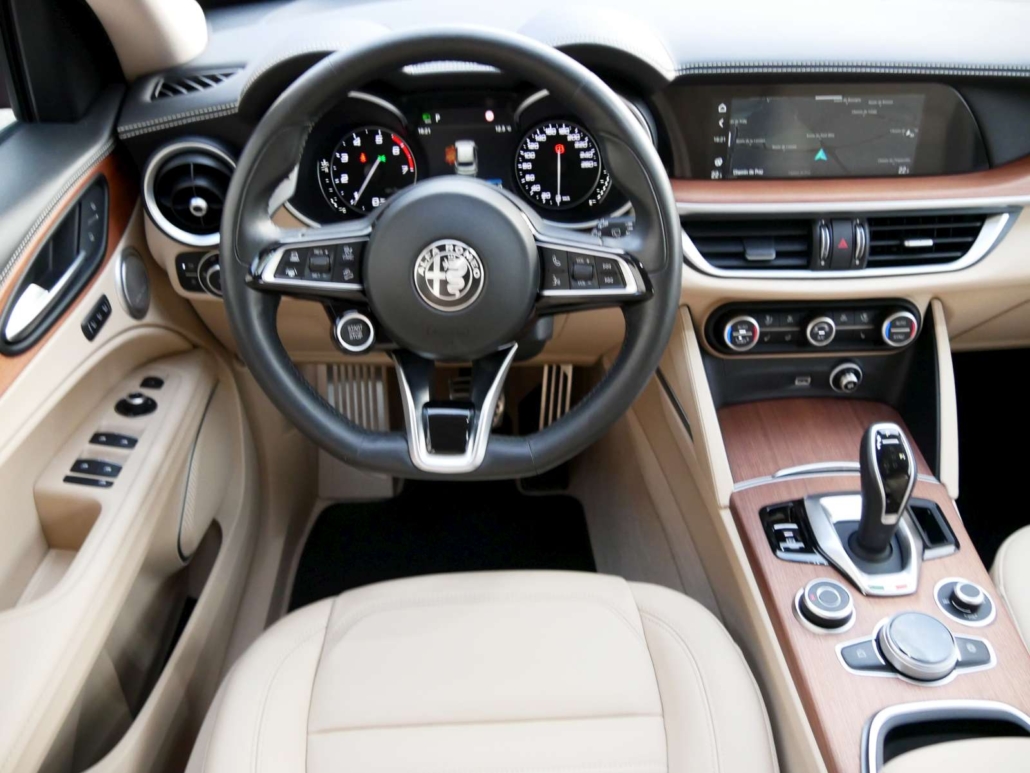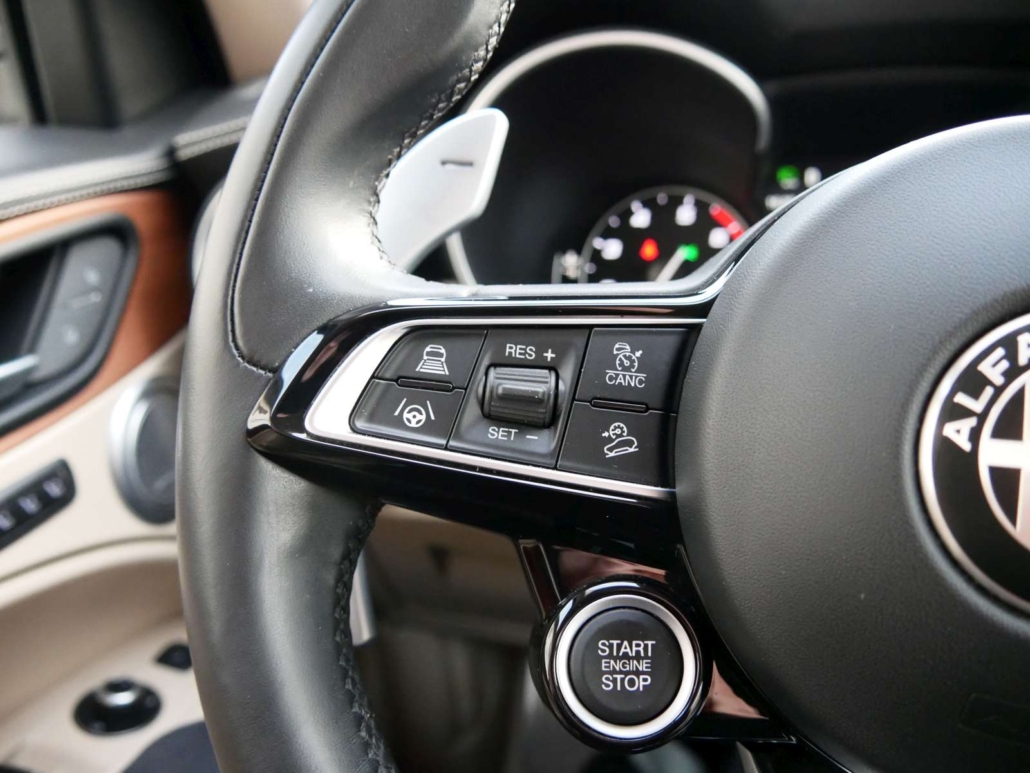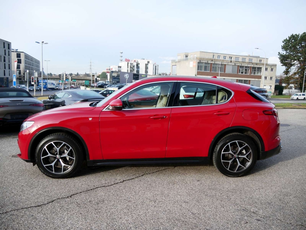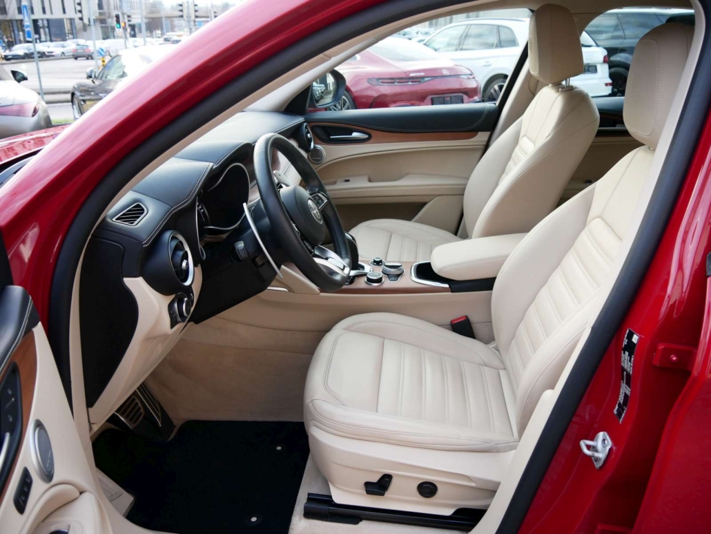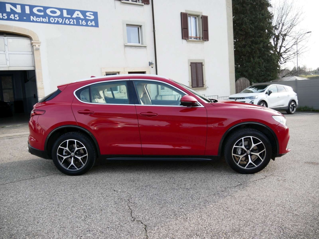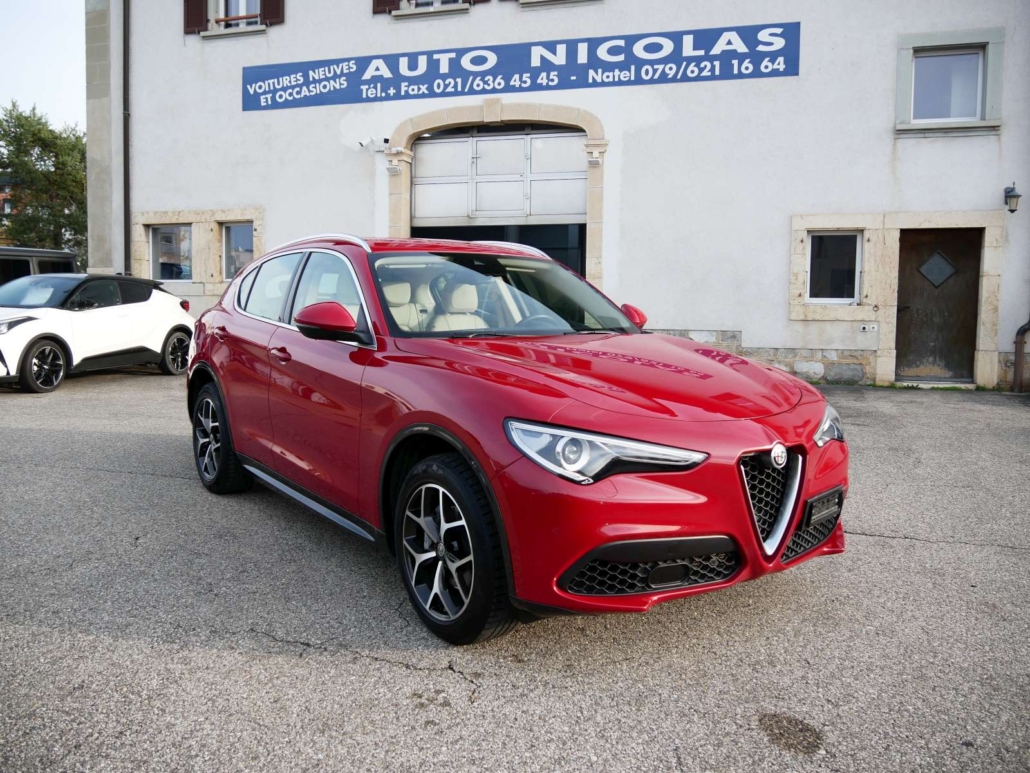 Catalyseur réglé, Direction assistée, Système antidémarrage, Lunette AR chauffante, Lumiere: Feu AR antibrouillard, Lumiere: 3ème feu de stop, Verrouillage central avec télécommande, Siège: Appuis-têtes arrière, Fixation ISOFIX pour siège enfant, Airbag: Airbag conducteur et passager, Airbag: Airbags rideaux pour la tête, Airbag: Airbag passager désactivable, Airbag: Airbags latéraux pour conducteur et passager, Pédales avec inserts en aluminium, Contrôle de ceinture, Ceintures de sécurité à 3 points à toutes les places, Frein de stationnement électromécanique, Détecteur de luminosité et de pluie, Alfa D.N.A system, Fonction Start/Stop, Syséme d’avertissement de perte de pression des pneus, Garantie: Alfa Garantie: 3 ans / kilométrage illimité (dès 1re mise en circ.), Etriers de freins peints en gris, Dual Color Bodykit Dark Miron, Tyre Fit (kit réparation de pneus) au lieu de roue de plissement, Assist: Adaptive Cruise Control, Mèdias: 2 ports USB à l’arrière, Clima: Climatisation automatique a 2 zones, Mèdias: Connected / Android Auto / Apple CarPlay, Leve-vitres électriques avant et arriere avec protection anti-pincement, Mèdias: Écran d’instrument TFT 7 , couleur, configurable individuellement, Assist: systeme de freinage intégré, Lumière: feux de jour a LED, Assist: Fonction de freinage d’urgence autonome, Pack: Pack BI-XENON 35W, Verniciatura: Peinture pastel, Sièges: Banquette arrière pliable dans le rapport 40/20/40, Prise 12V, Assist: Cruise Control, Mèdias: Connexion USB + AUX, Pack: Pack Veloce Lusso 1, Volant: commandes sur le volant, Pack: Pack Parking Assistance, Pack: Driver Assistance (ADAS NIVEAU 1), Pack: Pack Convenience Stelvio, Assist: ESP, avec Hill Holder, ABS, ASR, EBD, Pare-soleil passager avec miroir et éclairage intégré, Plaque d’entrée en aluminium pour la porte inférieure, Quatre roues motrices Q4, Mèdias: Système de navigation Alfa Connect 8,8 » avec affichage cartographique 3D, 8 haut-parleurs et pavé rotatif (y co, Médias: connectivité intégrée, Boîte: automatique séquentielle à 8 étages, Éclairage intérieur intégré dans les garnitures de toit avant et arrière, Tapis de pied, Paket: Convenience Paket, Roues: Jantes en alliage 19 DIAMANTE SILVER avec pneus 235/55