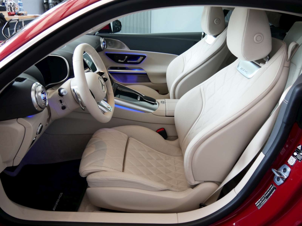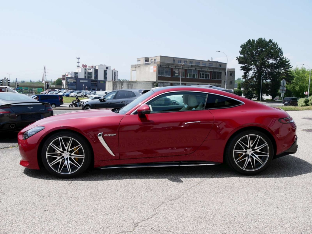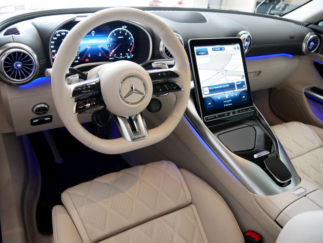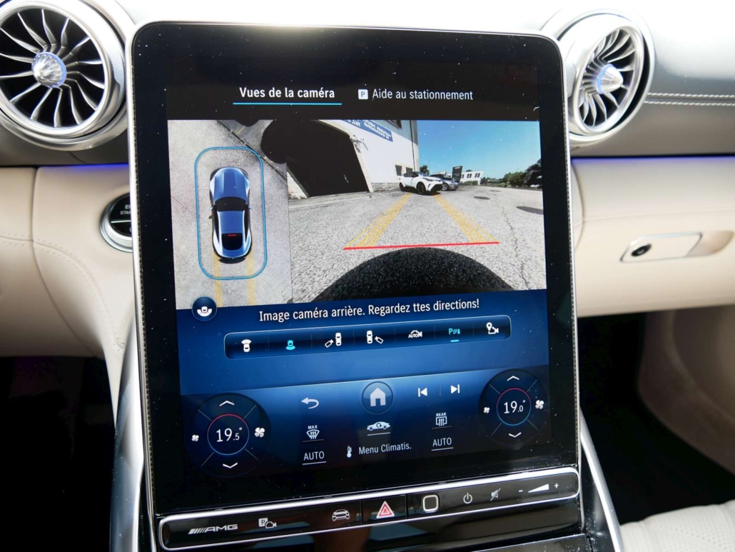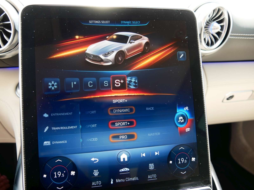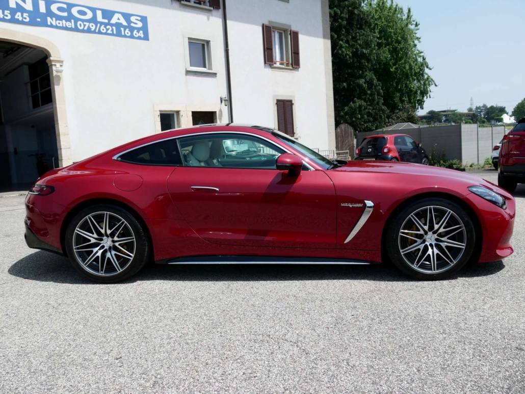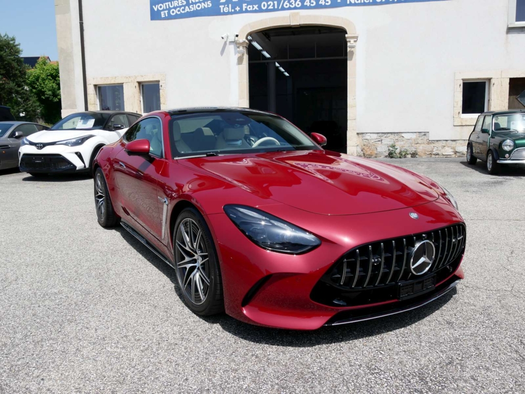 Système antiblocage (ABS), Programme électronique de la stabilité (ESP), Système antidémarrage, Lumière: Feu AR antibrouillard, Airbag: Airbag conducteur et passager, Assist: Tempomat avec limiteur de vitesse variable SPEEDTRONIC, Lunette chauffante avec temporisation, Ceintures de sécurité noir, Lumière: Assistant grands phares adaptatifs Plus, MAGIC VISION CONTROL, chauffant Système essuie-glaces adaptatif, KEYLESS GO fonction start, HANDS-FREE ACCESS, Sièges de sport AMG, Volant: Volant AMG Performance en cuir Nappa, Airbag: Coupure automatique de l´airbag passager avant, Volant: Boutons de volant AMG, Pare-soleil télescopique, Mèdias: Système de charge sans câble pour terminaux mobiles, Gilets de sécurité pour conducteur, Pack coffre à bagages, Assist: PRE-SAFE système de sécurité, Assist: Assistant de stationnement actif y c. PARKTRONIC, Mèdias: Radio digitale DAB, Mèdias: Intégration smartphone, AMG Track Pace, Pack:Pack Rétroviseur, Pack: Pack de mémorisation, Assist: Avertisseur de franchissement de ligne actif, Airbag: Airbags latéraux pour le conducteur et le passager avant (airbags combinés thorax et bassin), Assist: Systeme dappel durgence Mercedes-Benz, Hayon EASY-PACK, Mèdias: Navigation par disque dur, Pack:Pack Stationnement avec caméra de recul, GUARD 360 Sécurité du véhicule Plus, Sièges: Soutien lombaire à 4 réglages, Scanner d’empreintes digitales, Tapis de sol AMG avec l’inscription «AMG», Pédalier AMG sport en acier inoxydable brossé avec picots en caoutchouc noir, Contrôle de la pression des pneus, MERCEDES-SWISS-INTEGRAL – Toutes les réparations (y compris l’usure) jusqu’à 3 ans ou 100 000 kilomètres (selon la premi, MOBILITÉ MERCEDES-BENZ Il y a toujours une chose dans votre nouveau véhicule: le sentiment d’être en sécurité sur la rou, Clima: Climatisation automatique THERMOTRONIC, Assist: Assistant de signalisation routière, Tissu: Cuir nappa noir, Powerdomes sur le capot, Mèdias: Fonctions MBUX étendues, Services a distance Premium, Suspension: Performances AMG 4MATIC+, Peinture: Peintures métallisées noir obsidienne, Suspension: Châssis AMG ACTIVE RIDE CONTROL, Pack: Pack AMG DYNAMIC PLUS, Airbag: Sacs genoux pour conducteur et passager avant, Assist: Active Brake Assist avec fonction START-OFF aux intersections, Mèdias: Premium MBUX Navigation, Mèdias: Écran conducteur 12,3, Lumière: Feux arriere a LED adaptatifs, Media: Module de communication (LTE) pour lutilisation des services Mercedes me connect, Mèdias: Préparation pour MBUX Entertainment, Préparation a la remise des clés numériques, Ceintures de sécurité à 3 points, TIREFIT, Decor: Éléments décoratifs AMG en noir brillant, Décor: Ciel de toit en tissu noir, Pack: Forfait haut de gamme, Roues: Jantes AMG en alliage léger de 20 pouces a 5 doubles branches 20J, gris titane, Calandre AMG exclusive avec entretoises verticales chromées brillant et inscription « AMG », Tablier avant V8 exclusif avec abaissement optique Capot de radiateur et grandes entrées d’air, Jupe arriere V8 exclusive avec sorties d’air optiques et double garniture d’échappement en forme de losange en chrome br, Ailes avant et arriere élargies exclusives du V8, Lumière: LUMIERE NUMÉRIQUE avec fonction de projectio, KEYLESS-GO avec poignées de porte affleurantes, Nom du modele sur les ailes avant et le hayon, Seuils de porte AMG éclairés avec inscription »AMG » et couvercle remplaçable, Mèdias: Écran central tactile avec une diagonale d’écran de 11,9, Porte-gobelet dans la console centrale, Sièges: Ancrage pour siege enfant en taille i sur le siege passager avant, Prise dans le coffre a droite, Pack: Paquet USB plus dont 4 ports USB-C, Clé du véhicule en noir brillant avec inscription »AMG » et éléments décoratifs en chrome mat, Rétroviseurs extérieurs chauffants des deux côtés dans la couleur du véhicule, Boîte: AMG SPEEDSHIFT TCT 9G avec fonction RACE START, Suspension: Essieu arriere directeur AMG avec angle de braquage jusqu’a 2,5°, Direction AMG asservie a la vitesse, trois niveaux, Assist: Assistant actif pour les angles morts, Aérodynamique active avec AIRPANEL dans le tablier avant, Aile arriere extensible électriquement ainsi que électriquemen, Suspension: Systeme de freinage composite haute performance avec étrier fixe a 6 pistons et disques de frein 390 × 36 mi, Decor: Zone supérieure du tableau de bord avec revetement aspect nappa