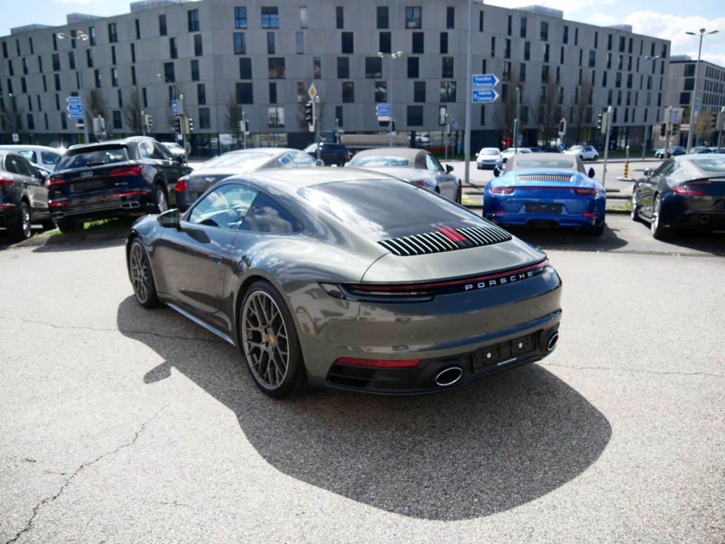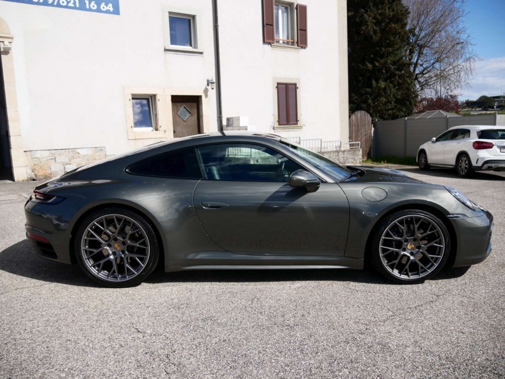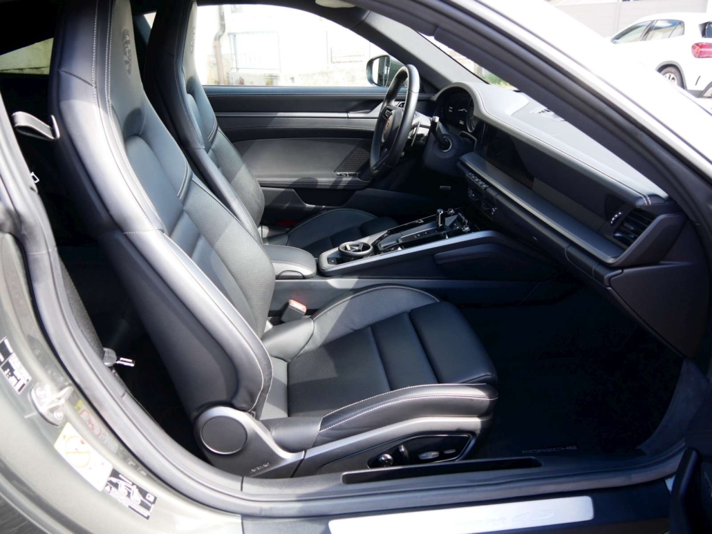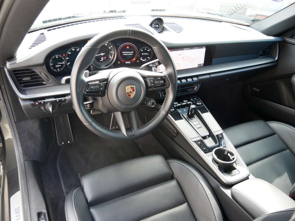 Lunette AR chauffante, Porsche Active Suspension Management (PASM), Assist: Assistance au stationnement avant et arrière, Peinture: Peinture Uni, Tapis de sol, Rétroviseurs extérieurs sur le garde-corps de porte réglables et chauffants électriquement, asphérique côté conducteur, Systeme d’essuie-glace avec balais d’essuie-glace aérodynamiques et buses de lave-glace, Vetro isolante termico colorato di verde, Compartiments de rangement dans les portes, Pateres sur les dossiers des sieges, 2 sorties d’échappement doubles, Aile arriere a extension automatique, Combiné d’instruments avec tachymetre central – 7-Zoll TFT-Displays, 10,9-Zoll Centerdisplay, Système antidémarrage, système antivol, Pack: Pack Sport Chrono incl. sélecteur de mode et Porsche Track Precision App – & Affichage de la température des pneus, Sièges: Sièges sport avec dossier électrique et réglage en hauteur ainsi – qu’un réglage mécanique longitudinalement, Suspension: Porsche Torque Vectoring Plus (PTV Plus) – incl. différentiel arrière électronique avec répartition variable, Inscription PORSCHE intégrée dans le bandeau lumineux, Sièges:Les dossiers des sièges arrière peuvent être rabattus individuellement, Levier sélecteur PDK avec mode automatique, sélection manuelle des vitesses via les palettes de chan, Jante de volant, poignées de porte, accoudoirs de panneau de porte et vide-poche de console centrale recouverts de cuir, Assist: Porsche Wet Mode, Lumière: Phares à LED avec feux de jour à 4 points, Baguettes de seuil de porte avec inscription modèle, Clima: Climatisation à régulation automatique 2 zones avec réglages de température séparés pour le conducteur et le pass, Boîte: Boîte de vitesses Porsche à double embrayage à 8 vitesses, Lubrification à carter sec intégrée avec pompe à huile contrôlée par la demande, Construction légère intelligente en construction composite aluminium-acier, Réglage de l’arbre à cames et commutation de la levée de soupape VarioCam Plus, Bloc moteur et culasse en aluminium, Refroidissement par eau avec gestion thermique, Suspension: Transmission intégrale avec embrayage multidisque piloté par cartographie Porsche Traction Management (PTM), Bandes de vitres latérales en noir, Affichage du contrôle de la pression des pneus, Auto Installation démarrage/stop, Volant: Volant sport multifonction avec palettes de changement de vitesses, jante en cuir lisse, Assist: Régulateur de vitesse, Kit de réparation des pneus avec compresseur d’air électrique, Étriers de frein rouges, Médias: Porsche Communication Management (PCM) inkl. Online-Navigation – Préparation téléphone portable, interfaces audi, Médias: Sound Package Plus avec 8 haut-parleurs et une puissance totale de 150 watts avec amplificateur intégré et trait, Coffre avant, Volant: Volant sport multifonctions avec palettes de changement de vitesse et réglage manuel de la longueur et de la hau, Suspension: Freins à étrier fixe monobloc en aluminium à 6 pistons à l’avant et freins à étrier fixe monobloc en alumini, Roues: Jantes Carrera S 20/21 pouces – Pont avant: 8,5 J x 20 avec pneus 245/35 ZR 20 – Pont arriere: 11,5 J x 21 avec, Sièges: Logements pour système de fixation de siège enfant ISOFIX côté passager avant, Suspension: Disques de frein de 350 mm de diamètre à l’avant et 350 mm à l’arrière, Habillage de la proue avec prises d’air latérales, y compris clapets d’air de refroidissement actifs et manchons d’air (, Médias: Connect Plus avec navigation en ligne, Apple CarPlay – Module téléphonique LTE avec lecteur de carte SIM, interf, Filtre à pollen/particules avec filtre à charbon actif, Porsche Active Aerodynamics (PAA) avec spoiler avant à déploiement automatique, volets d’air de refroidissement actifs e, Frein composite céramique Porsche (PCCB): avec étriers fixes monoblocs en aluminium à 10 pistons à l’avant et étriers fi, Mèdias: Porsche Communication Management (PCM) avec écran tactile haute résolution de 10,9 pouces, Système de suivi des véhicules Porsche (PVTS), Lumière: Feux arrière, y compris feux de recul, feux arrière, feux de brouillard arrière et clignotants, ainsi que trois, Décor: Montre Sport Chrono avec cadran autonome, Enjoliveurs de portes en aluminium brossé avec inscription 911 turbo S en relief, Dekor: Ouverture des portes, baguettes décoratives du tableau de bord et des portes et panneau de la console centrale en, Ciel de capote en tissu noir, Enjoliveurs du tableau de bord de la console centrale et des panneaux de porte en Diamar darksilver, 1 porte-gobelet (côté passager), 1 porte-gobelet dans la console centrale