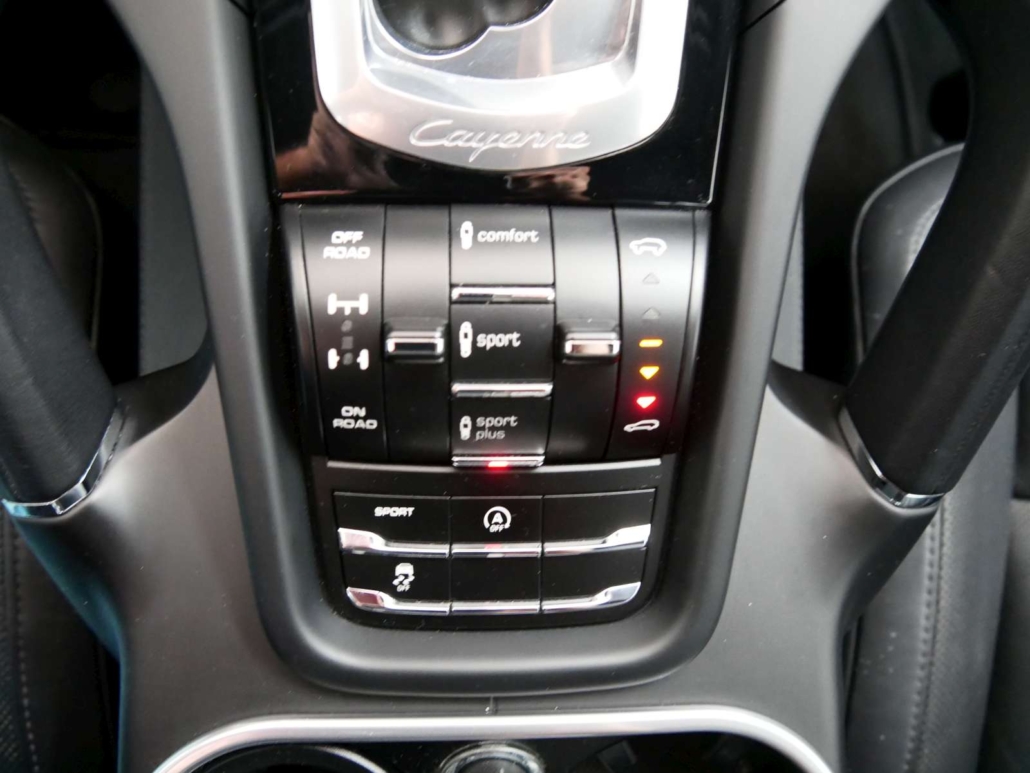 Catalyseur réglé, Boîte de réduction, Traction intégrale permanente, Régulation du dérapage des roues (ASR), Système antiblocage des roues (ABS), Assistance de freinage, Indicateur d’usure des garnitures de frein, Stabilisateurs AV et AR, Stability-Management (PSM), Direction assistée, Système antidémarrage, Peinture: Peinture Uni, Vitres teintées, Lunette AR chauffante, Rétroviseurs extérieurs droite et gauche chauffables, réglables et rabattables électriquement, Phares antibrouillard, Lumière: Feu AR antibrouillard, Essuie-glace AR intermittent avec lave-glace, Essuie-glaces AV avec intervalle, Verrouillage central avec télécommande, Déverrouillage du bouchon réservoir de l’intérieur, Déverrouillage de couvercle de coffre à bagages de l’intérieur, 3 appui-têtes AR, Sièges AV réglables en hauteur, Sièges: Dossier AR rabattable en parties, Fixation ISOFIX pour siège enfant, Sièges avant confort à réglage électr., Tissu: Equipement en cuir, Volant: Volant réglable en hauteur et profondeur, Airbag: Airbag conducteur et passager, Airbag: Airbags rideaux pour la tête, Airbag: Airbag passager désactivable, Vide-poches dans l’accoudoir AR, Accoudoir de console centrale avant avec compartiment de rangement intégré, Console centrale avec vide-poches, Tous les deux miroirs de courtoisie éclairés, Couverture de compartiment de charge, Prétensionneurs de ceintures AV et AR, Ceintures AV réglables en hauteur, Ceinture automatique au milieu du fond, Climatisation à régulation automatique, Filtre à pollen (filtre à poussière), Lampes de lecture AR, Lampes de lecture AV, Eclairage de sortie dans les portes, Eclairage intérieur avec temporisation d’extinction, Assist: Régulateur de vitesse, Ordinateur de bord, Système d’alarme avec détecteur intérieure, Indicateur de la température extérieure, Montre digitale, Indicateur de la pression d’huile, Compte-tours, Compteur kilométrique journalier, Affichage du contrôle de la pression des pneus, Lève-vitres électriques AV et AR, Mèdias: 10 haut-parleurs, Prise de courant, Airbag: Airbags latéraux pour conducteur et passager, Assist: Système de protection contre les chocs latéraux, Spoiler de toit, Indicateur des intervalles d’entretien, Indicateur multifonctions, Poignées extérieures en couleur de la carrosserie, Assist: Porsche Traction Management (PTM), Couvertures pour les seuils avant, Ceintures de sécurité à 3 points à toutes les places, Roues: Série de réparation du pneu avec le compresseur, Version non-fumeur, Frein de parc électronique, Feu-stop adaptatif, Eclairage aux pieds avant et arrière, Filtre à charbon actif, Étriers de frein gris foncé, Boîte: Boîte automatique à 8 rapports séquentielle, Lumière: Eclairage assisté (éclairage automatique), 4 jantes en alliage léger Cayenne S Rad 18J, Phares Bi-Xénon avec réglage automatique de la hauteur, Hayon électrique, Connection AUX-In, Avertisseur de port de ceinture pour sièges conducteur et passager avant, Lumière: Feu arrière foncé LED, Prise de courant 12V, Assistant au démarrage au côte – (Hill Assist Control – HAC), L’éclairage diurne à LED, Fonction Start/Stop, Lumière: Clignotants et feux de position par LED, Pack: Paquet intérieur noir brillant, Préparation pour dispositif d’attelage, Système audio Radio/CD MP3, écran couleur